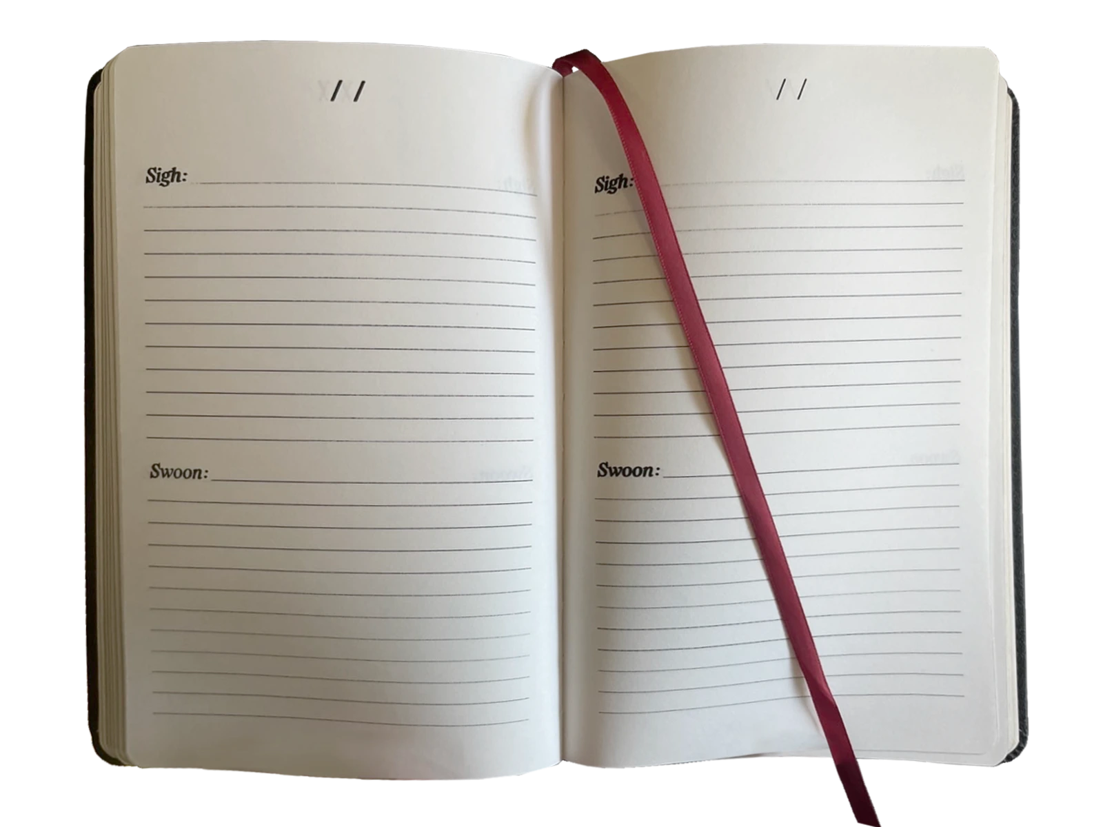 The Sigh Swoon Daily Journal is made to be lived with. Its soft leather cover bends and folds, a satin ribbon keeps your place among gilded pages. Inside: 365 daily prompts and a full twelve-month calendar, open and undated, so you can begin anywhere, anytime. Luminous, endless, inviting.